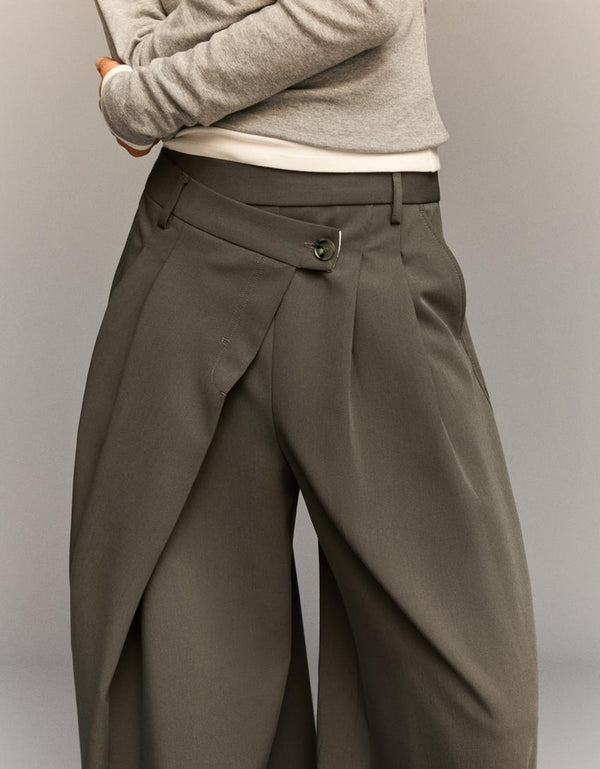 Upplev den ultimata kombinationen av stil och komfort med vår draperade byxa. Den lösa passformen ger dig frihet att röra dig, medan den höga midjan framhäver din silhuett på ett elegant sätt.