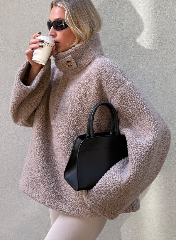 Vår teddy anorak omfamnar dig med värme och stil. Den lösa passformen och det mjuka materialet gör den till det perfekta valet för kalla dagar. Perfekt för promenader eller avkopplande stunder utomhus.